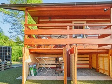 V objektu: vstupní terasa s posezením, malá chodbička, společenská místnost s kuchyňským a jídelním koutem (LCDTV, lednice, varná konvice, mikrovlnná trouba, plně vybavený kuchyňský kout, varná dvoudeska, jídelní stůl, sedací souprava = možnost 2 přistýlek, pouze na vyžádání), 1/4 ložnice (4 x lůžko, úložný prostor), koupelna (sprchový kout, umyvadlo, WC). Pobyty v hlavní sezóně pouze neděle - neděle. Topení: elektrické.