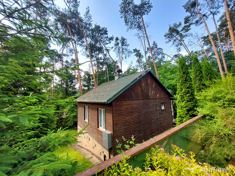 SLAPY: rekreační chata u lesa a s vlastní pramicí, jen 300 m od vodní nádrže Slapy (koupání, rybaření, vodní sporty), s grilem a ohništěm, 35 km od Prahy.