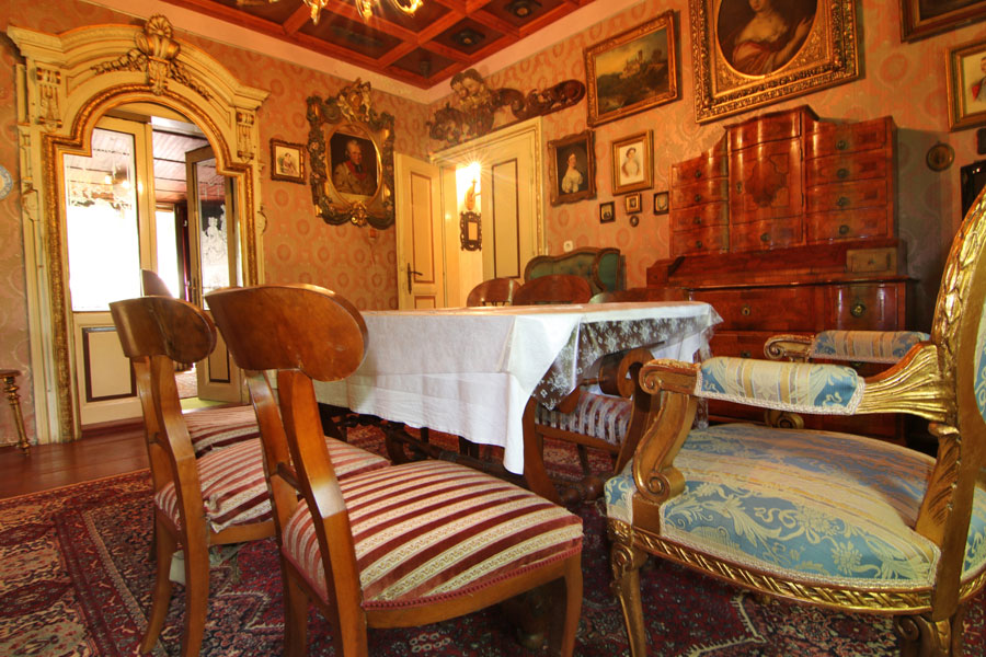 V objektu v patře: chodba, obývací místnost (BVTV, krbová kamna, historická sedací souprava), kuchyň (sklokeramická varná deska, trouba, lednice, varná konvice), 2/2 lůžkové ložnice (vždy samostatné lůžko), koupelna (vana, umyvadlo, bidet, WC).