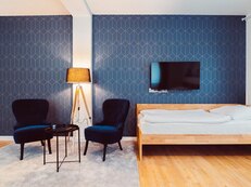 V apartmánu: LCD TV, WIFI, stolek, židle, křesla, dvoulůžko, přistýlka, kuchyňský kout (lednice, vestavěná trouba s indukční varnou deskou, rychlovarná konvice, myčka, kávovar na kapsle), koupelna (sprchový kout/vana, umyvadlo, WC). Topení: ústřední topení.