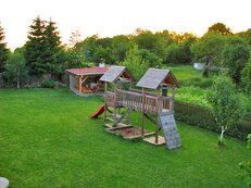 U objektu: velký oplocený pozemek, terasa s posezením, zastřešená pergola s pecí na pizzu, plynovým grilem a posezením, prostorný travnatý prostor, ohniště s posezením, dětské dřevěné hřiště se skluzavkou a s pískovištěm, 2 houpačky, parkování (při větším množství sněhu jsou nutné sněhové řetězy).