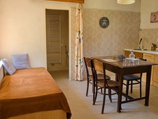 2. apartmán: zahradním apartmánu ubytování pro 2 - 4 osoby, je k dispozici 1 ložnice s 1 manželskou postelí 2 jednolůžkové postele. Koupelna se sprchou a umyvadlem a toaleta.