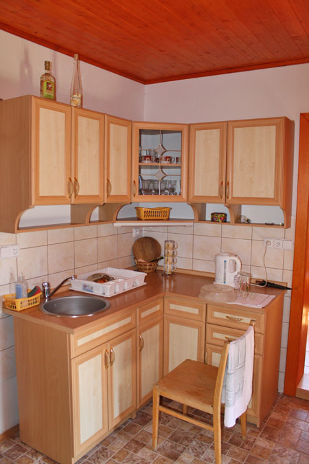 V objektu v přízemí společenská místnost (BVTV, hifi věž, CD přehrávač, sedací souprava s možností přistýlky, DVD, krbová kamna), kuchyně (el. vařič, lednička, varná konvice, mikrovlnná trouba, kávovar, venkovní gril), ložnice: 1/2 - jedno lůžko + rozkl. pohovka, 1/4 -2 lůžka+palanda 2 lůžka, koupelna se sprchovým koutem, umyvadlo, WC. V patře 4 přistýlky na matracích (vhodné pouze pro mladé).