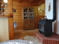 V objektu kuchyňský kout (sporák, lednice, kávovar), obývací pokoj s BVTV + SAT a krbovými kamny, 1/4, 1/2 ložnice, balkón, WC a koupelna (vchod z terasy). Topení: tuhá paliva. Pobyty neděle - neděle.
