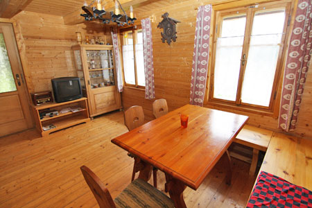 V objektu podkrovní 2 ložnice - 1/2 (2x samostatná postel), 1/4 (2x samostatná postel postel + dvoulůžko), v přízemí kuchyňský kout, který je součástí obývací místnosti (varná deska, trouba, mikrovlnná trouba, lednice, varná konvice), BVTV + SAT, rádio, krbová kamna, sprchový kout, WC. Topení: na tuhá paliva.