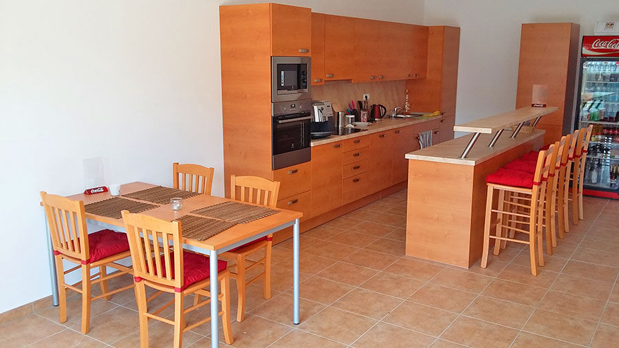 V objektu: společenská místnost se stoly a židlemi, TV a rádiem + kuchyňský kout (sklokeramická deska, lednice, mikrovlnná trouba, horkovzdušná trouba, rychlovarná konvice, pračka), 3/3 + 1 pokoje (vždy 3x lůžko a 1x přistýlka, WIFI, SWC - sprchový kout, umyvadlo, WC), 1/4 + 1 pokoj (4x lůžko a 1x přistýlka, WIFI, SWC - sprchový kout, umyvadlo, WC), stolní tenis, stolní fotbal. Topení: ústřední plynová kotelna. Možnost ubytování jen po jednotlivých pokojích >