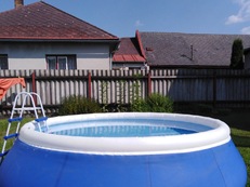 U objektu: oplocená zahrada, pískoviště, trampolína, nadzemní bazén (nekrytý a nevyhřívaný), dětská houpačka, gril, kryté i nekryté posezení, 3x slunečník, 1x lehátko, parkování, parkování až pro 3 auta.