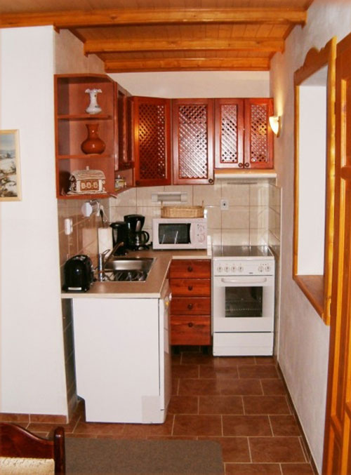 V objektu: tři ložnice, 3x WC, 2x sprchový kout, kuchyňka (elektrický sporák s troubou, lednice, myčka nádobí, mikrovlnná trouba), obývací pokoj S KRBEM a BVTV+SAT, automatická pračka, zastřešená terasa s posezení, balkón. Topení: elektrické + dřevo.