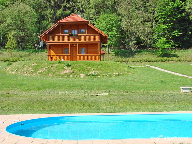 VYSOČINA: moderní patrová zděná chata S KRBEM v rekreačním areále S BAZÉNEM pod Holubím vrchem, rybaření 100 m u obce Maletín, 9 km od Moravské Třebové.