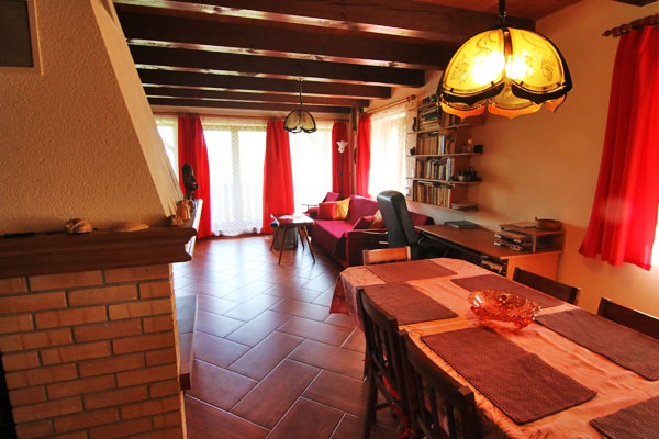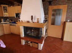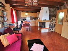 V objektu v přízemí vstupní chodba, velká společenská místnost s kuchyňským a jídelním koutem (BVTV+SAT, DVD, video, sedací souprava, 1x lůžko, krb, kuchyňská linka, sklokeramická varná deska, lednička, myčka, mikrovlnná trouba, varná konvice, kávovar, toustovač, pračka, jídelní stůl, židle), koupelna (sprchový kout, umyvadlo, WC).
