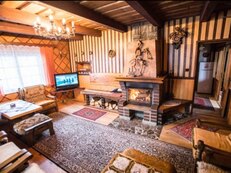 V objektu v přízemí společenská místnost (kulečník, BVTV, satelit, krb, posezení), jídelna s posezením, kuchyň (elektrický vařič, sporák, samostatná trouba, mikrovlnná trouba, lednice, varná konvice, gril), sauna, herna (ping-pongový stůl, posezení), 1/3 a 1/2 ložnice.