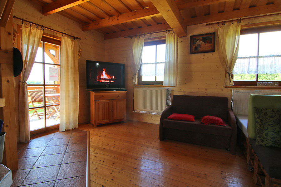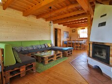 V objektu v přízemí: vstupní chodba, obývací místnost (LCD TV, krb, WIFI, velká pohovka, menší pohovka, stolek, stolní fotbal, výstup na terasu, samostatné lůžko, přistýlka) s kuchyňským a jídelním koutem (el. sporák, lednice+ mrazák, kávovar, rychlovarná konvice, myčka, mikrovlnná trouba, stůl, židle, lavice), koupelna (sprchový kout, umyvadlo, WC), infrasauna, schody do patra.