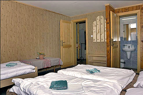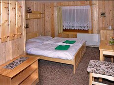V objektu 4 ložnice - v přízemí 1/3 s vlastním sociálním zařízením, v patře 1/2, 1/3, 1/4, koupelna, WC. Stravování je zajištěno ve stylové kolibě.