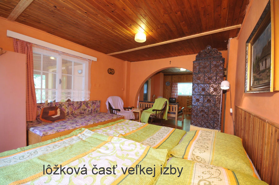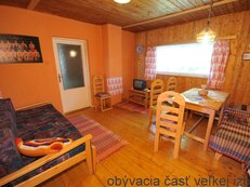 V objektu obývací místnost zařízená na způsob "slovenskej izby" - 4 lůžka, od které je dispozičně oddělen pokoj se 3 lůžky, kuchyně - sporák, elekt. dvojplotýnkový vařič, lednice, varná konvice, kávovar, BVTV, kachlová kamna, WC, koupelna. Topení: na tuhá paliva.