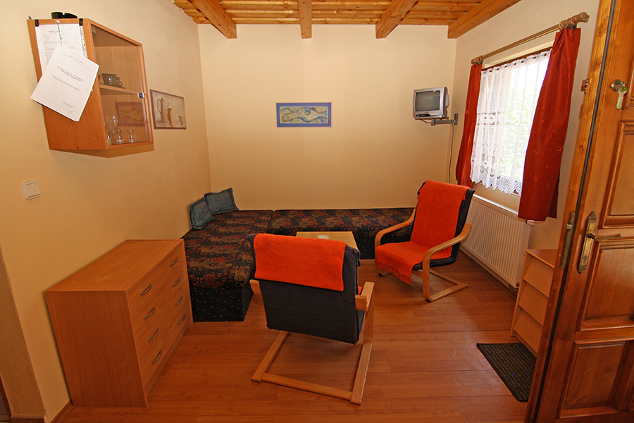 V objektu: 1/2 ložnice (dvoulůžko), kuchyňský kout a obývací místnost (BVTV, plynový sporák, lednice, mrazák, mikrovlnná trouba, varná konvice, 2x samostatná postel, stůl, židle, rádio), koupelna (sprcha, umyvadlo, fén, WC). Topení: ústřední.
