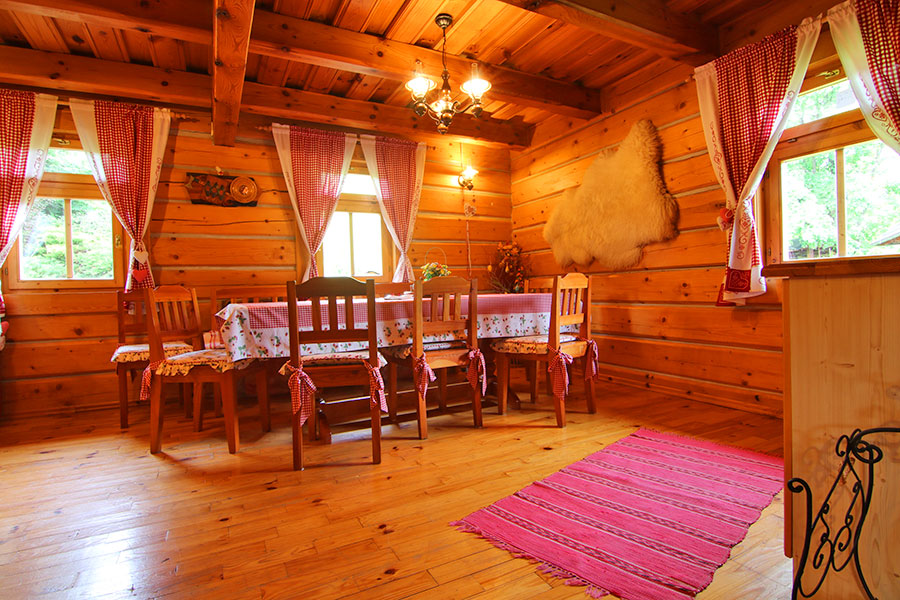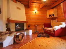 V objektu v přízemí vstup, společenská místnost s krbem a prostorným jídelním koutem, BVTV, DVD, audiosoustava, kuchyně (elektrický sporák, kachlová pec, lednička, varná konvice, gril), 1/2 ložnice, koupelna s umyvadlem a sprchovým koutem, WC. V patře 2/4 lůžkové ložnice. Topení: tuhá paliva.