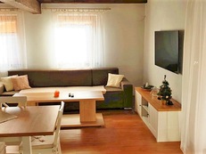 V podkroví: 2/4 ložnice (první ložnice: dvoulůžko a 2x přistýlka, druhá ložnice: dvoulůžko a 2x samostatná postel, koupelna (sprchový kout, WC), možnost zajištění dětské postýlky. Topení: tuhá paliva - krb, podlahové, plynové. Možnost zajistit až 14 lůžek po dohodě.