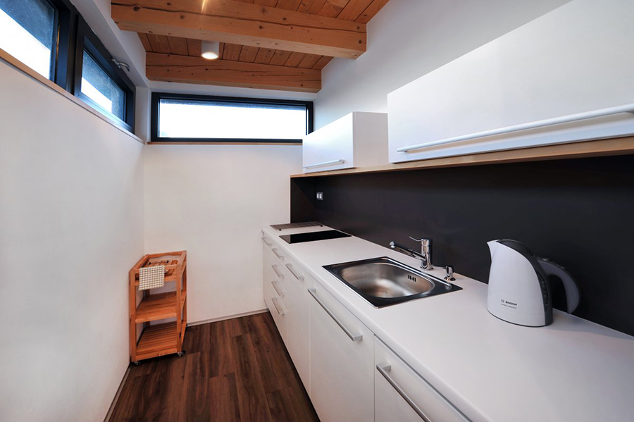 V objektu v přízemí: obývací místnost (TV + SAT, WIFI, rozkládací pohovka - 2x přistýlka) s kuchyňským a jídelním koutem (varná deska, lednička, varná konvice, mikrovlnná trouba, myčka, stůl + židle), pracovna (pračka, sušička), koupelna (sprchový kout, umyvadlo, WC, fén).