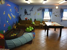 V objektu 2 až 5 lůžkové pokoje dvou kategorií. * kategorie (na pokoji je umyvadlo s teplou a studenou vodou, WC a sprcha na patře), **kategorie (pokoje s vlastním sociálním zařízením, BVTV+SAT). Dále v objektu restaurace s barem a s letní terasou, jídelna, velká herna s kulečníkem, stolní tenisem, fotbalem, hokejem a šipky.