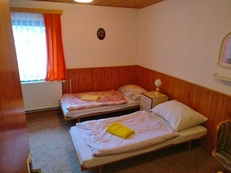 V objektu v patře: 2 až 4 lůžkové pokoje (celkově 8 pokojů, 4x přistýlka), společná koupelna pro muže a společná koupelna pro ženy. Topení: tuhá paliva - krb + ústřední.