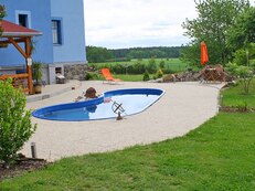 TŘEBOŇSKO: rodinný penzion v centru obce ve velké zahradě se zapuštěným BAZÉNEM a HŘIŠTĚM, 8 km od centra Třeboně.
