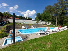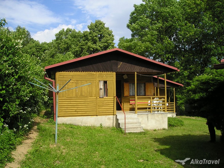 Ubytování: ve 4 -5 lůžkových chatách s vlastní terasou a lavičkou. Vybavení každé chaty: obývací místnost s 2-lůžkem, 1x3 lůžková ložnice (1x palanda, 1x samostatné lůžko), kuchyňka (el. dvouvařič, nádobí, chladnička, el. zásuvky, teplá i studená voda), koupelna (WC, umyvadlo, sprchový kout). V hlavní budově restaurace s BVTV a krbem.