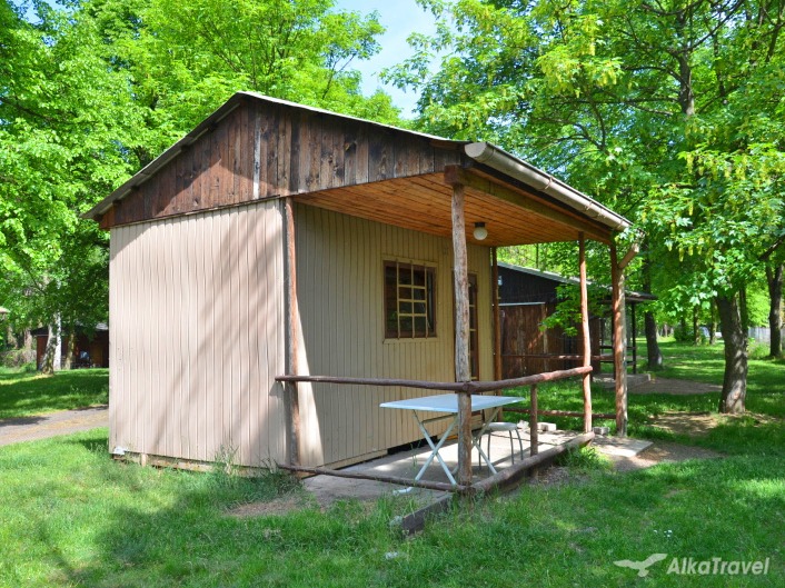 Ubytování ve 2 typech (jednodušeji vybavených) chatek: malé chatky pro max. 4 osoby - 2 palandy, stůl, židle, elektřina. Větší chatky pro max. 4 osoby: 4 postele, stůl, židle, elektřina, skříň, stolek, 1-plotýnkový vařič, pitná voda, průtokový ohřívač, lednice. Jedná se o jednodušší chaty.
